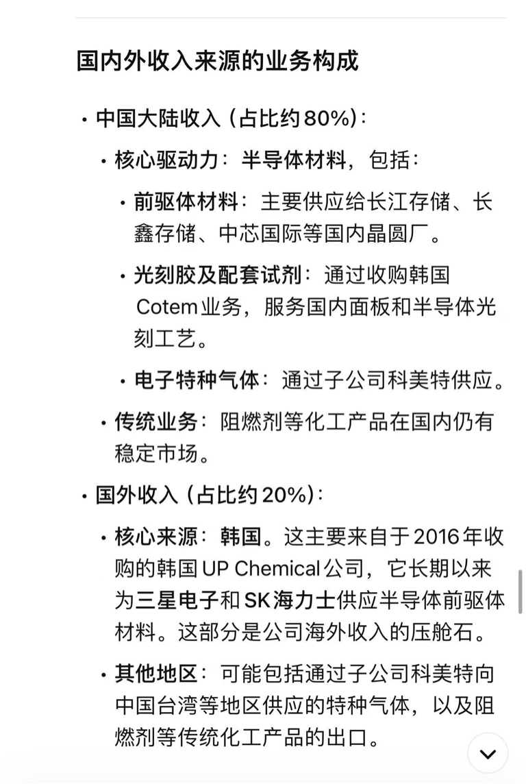 80%收入来自国内。关税站只会加速国产替代。反而利好雅克。海外收入20%全部是来