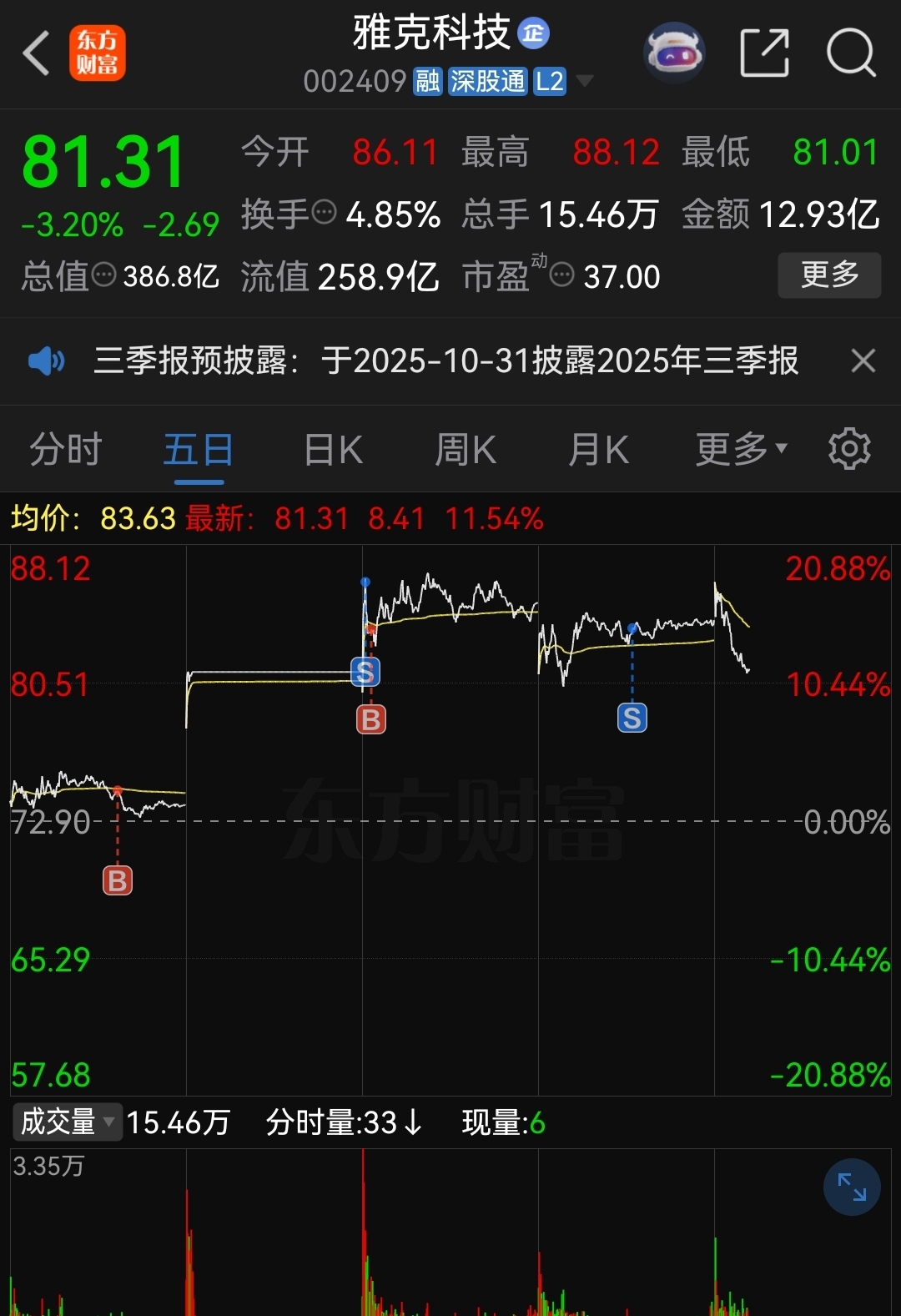 $雅克科技(SZ002409)$ 昨天看到有人说孕线我就是知道有韭菜进来了,必须S