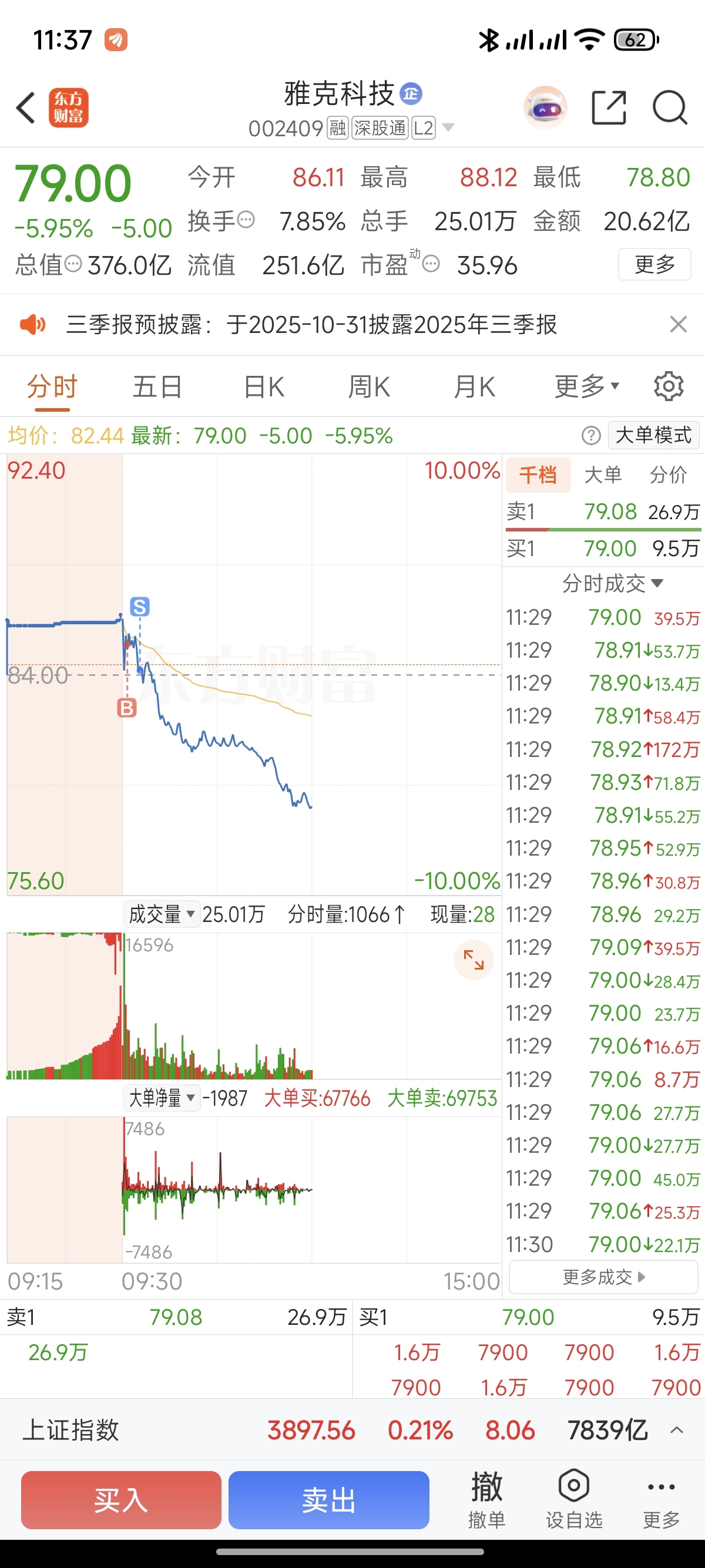 $雅克科技(SZ002409)$ 想到今天是兑现,开盘高点都不过的?