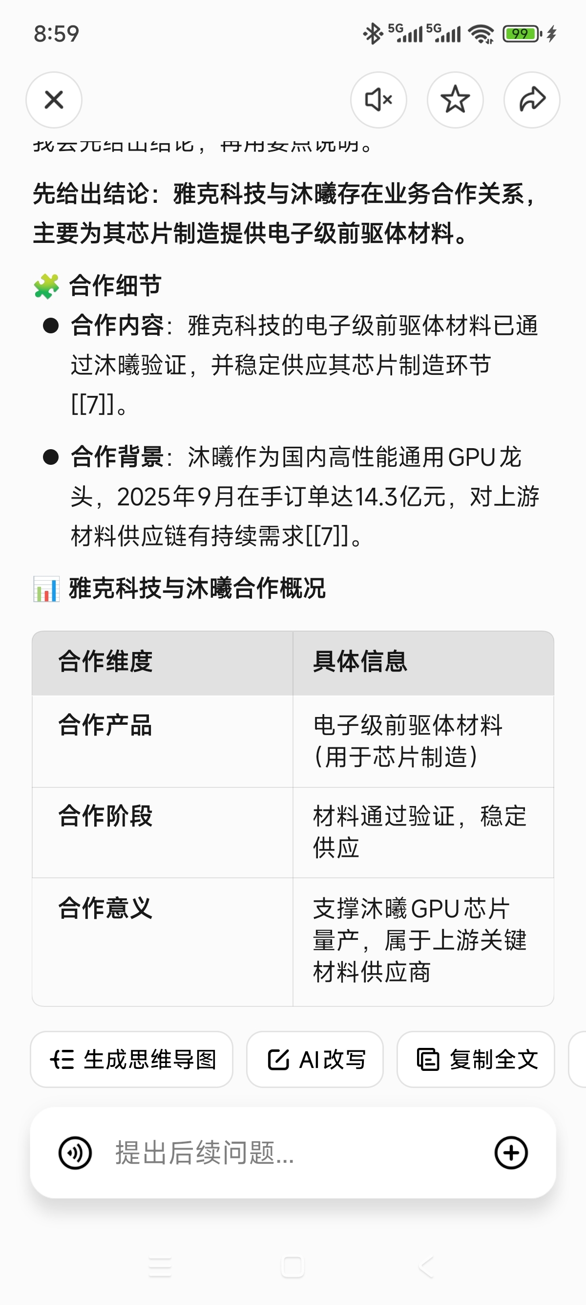 $雅克科技(SZ002409)$ 雅克科技是沐曦的供应商