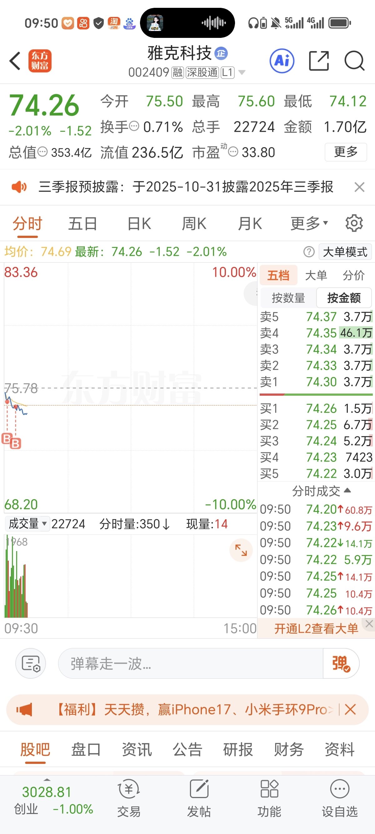 $雅克科技(SZ002409)$ 会有肉吃吗