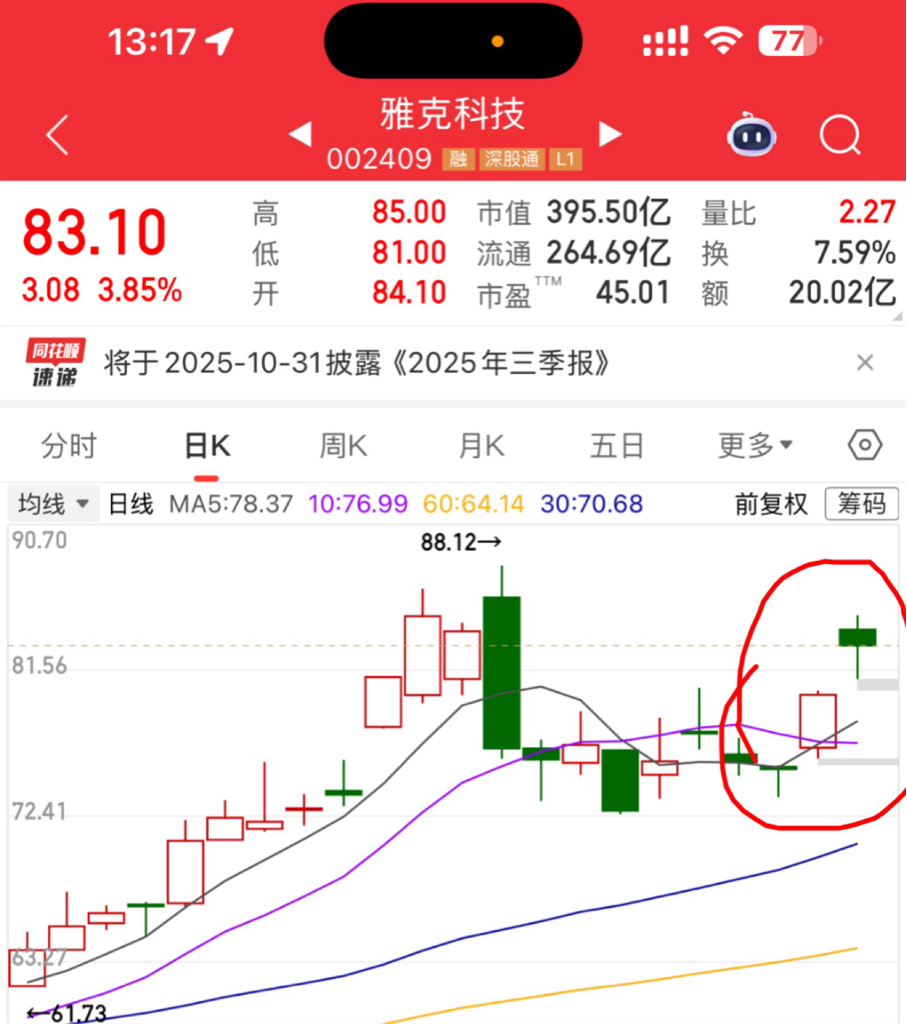 $雅克科技(SZ002409)$ 两个缺口,包括今天的周线缺口,等着做了双顶后,跌下去补缺