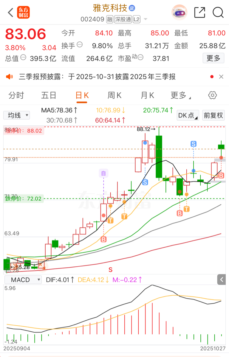 $雅克科技(SZ002409)$ 上次吃了大肉,今天又来了,不知道这次怎么样