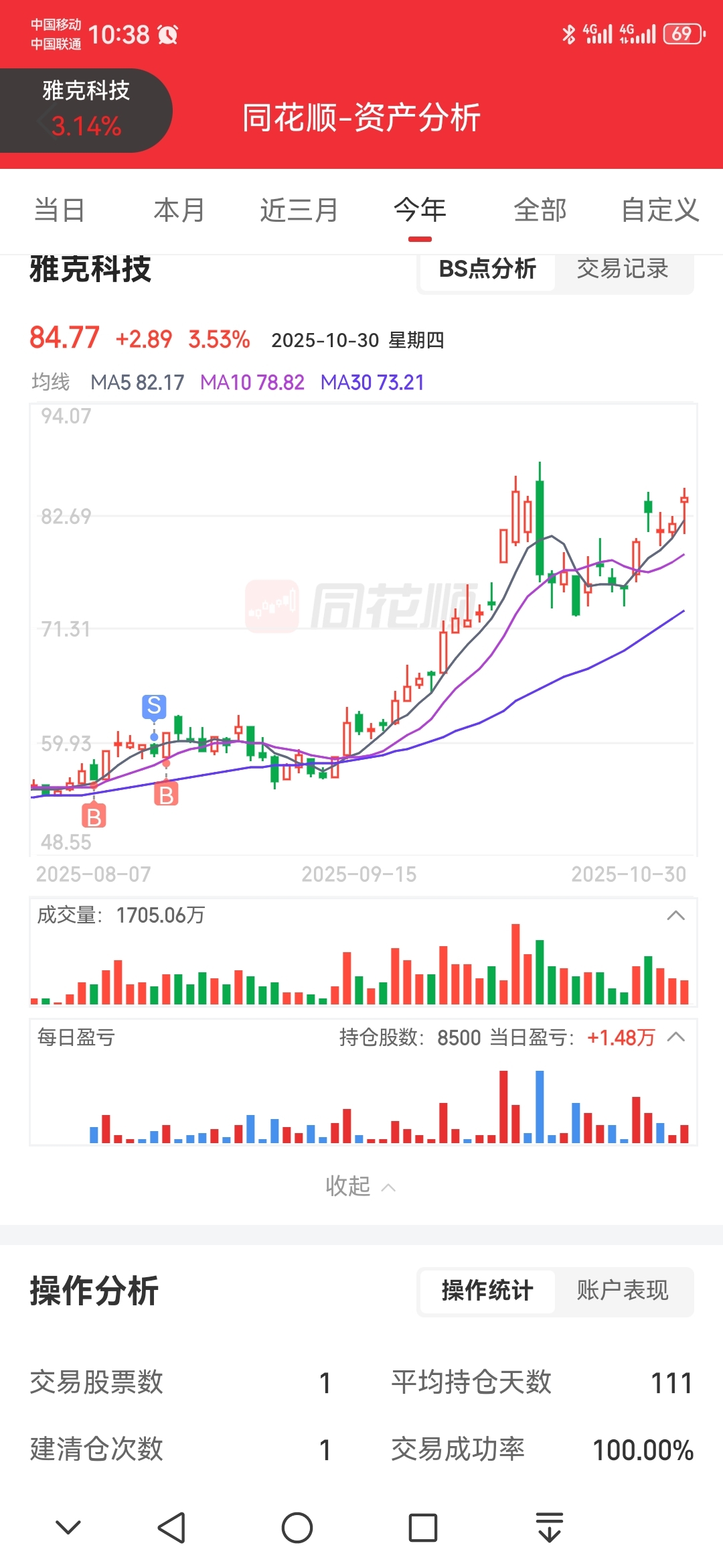 $雅克科技(SZ002409)$ 大盘与个股趋势之上还是少动为妙,当初卖了第二追高接回很被动。
