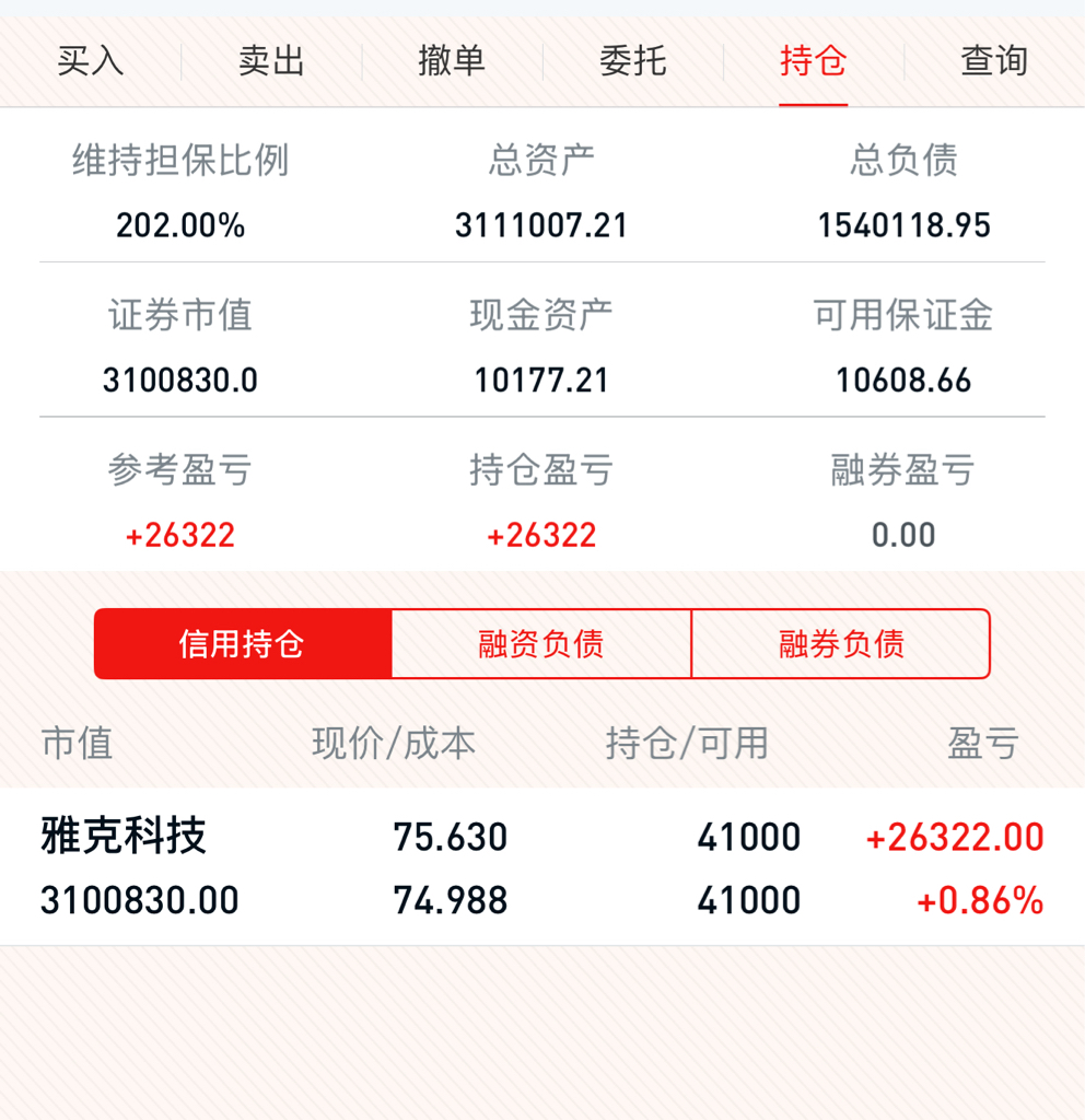 $雅克科技(SZ002409)$ 满仓满融买入了