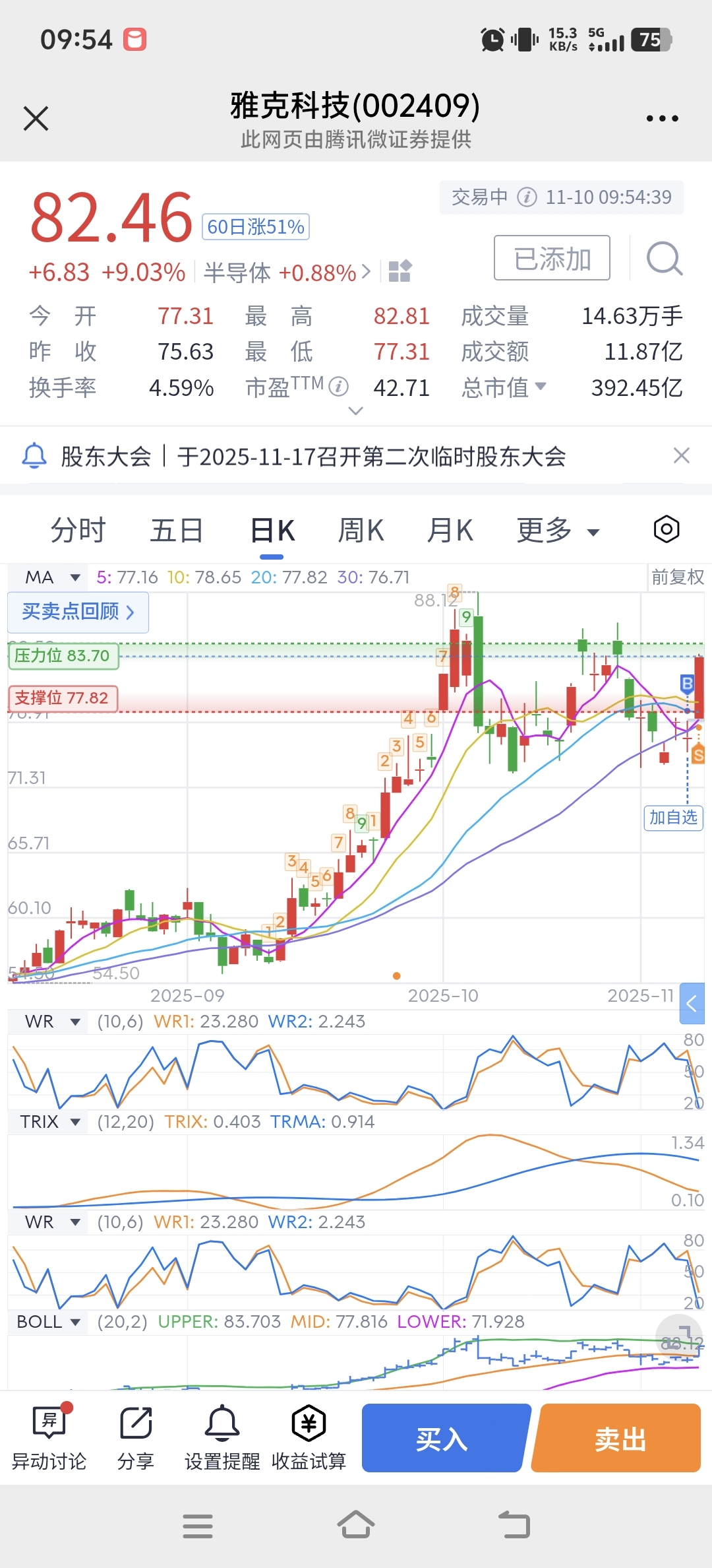 $雅克科技(SZ002409)$ 服气,6个点卖的,哎,车上的发财,