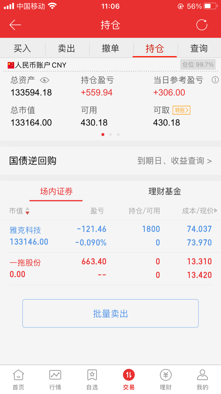 82元卖了雅克买一拖股份,做防守。今天卖了一拖,74买雅克回来,算做一个T吧!