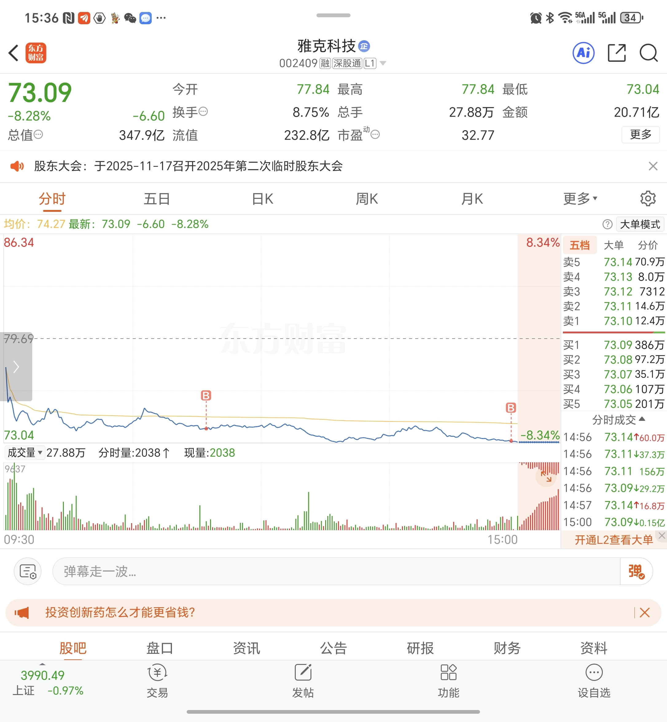 $雅克科技(SZ002409)$ 感谢量化给我买回来的机会,今天小幅建仓,月线踩了我会再买一倍仓,下个月靠你了
