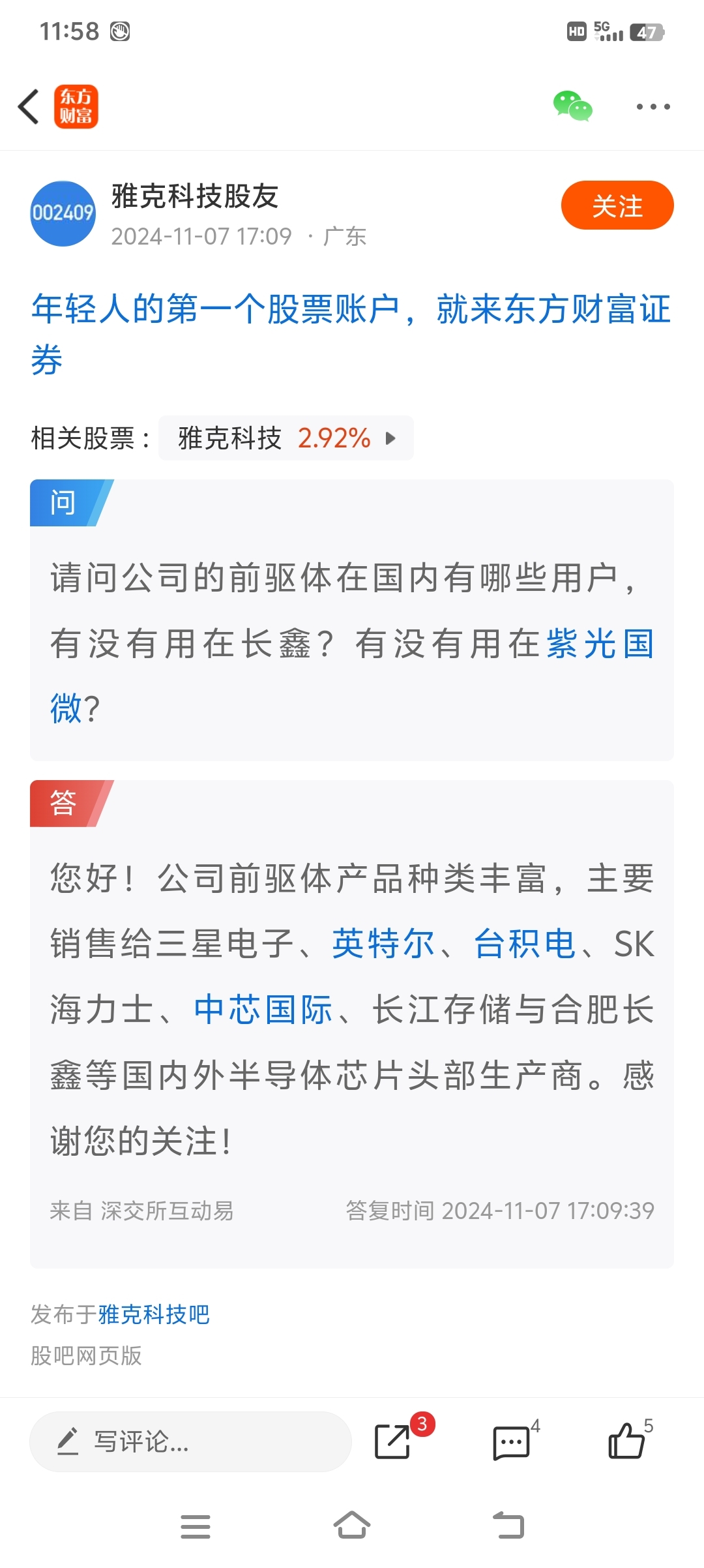 $雅克科技(SZ002409)$ 英特尔,台积电,三星,海力士,美光,长江,长鑫,中芯,以上大厂都是弱雅的客户,客户忙着扩产,涨价,赶订单。弱雅忙着收割韭菜……