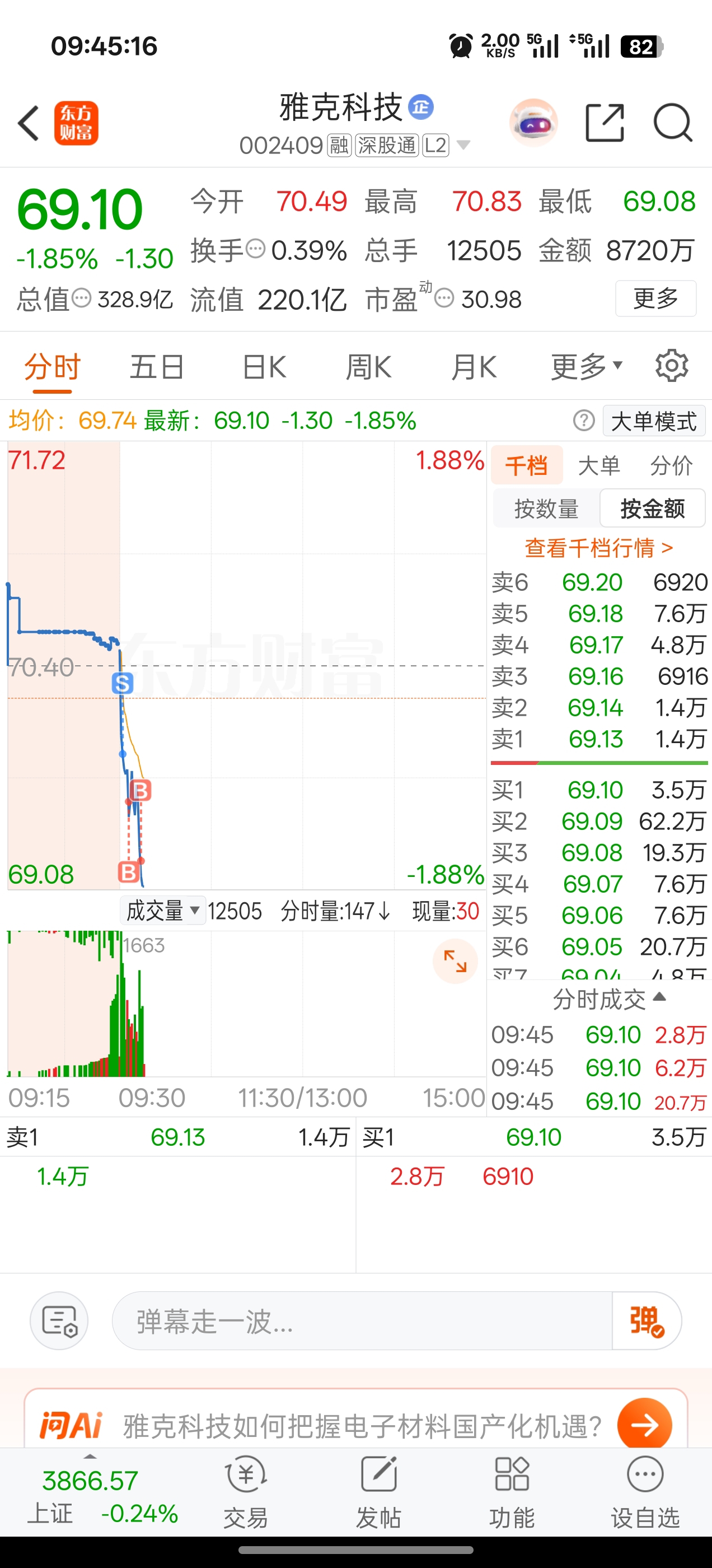 $雅克科技(SZ002409)$ 今日做t完成