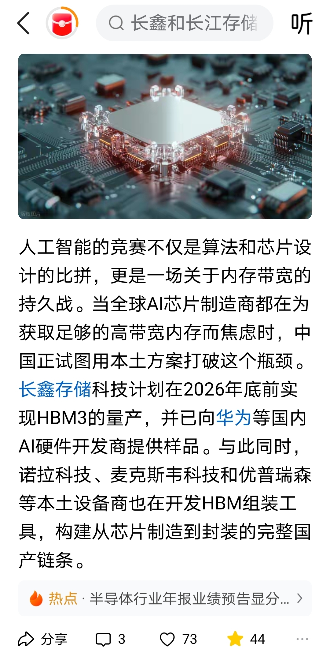 $雅克科技(SZ002409)$ 中国半导体产业力争在2026年底前实现HBM3芯片的国产化