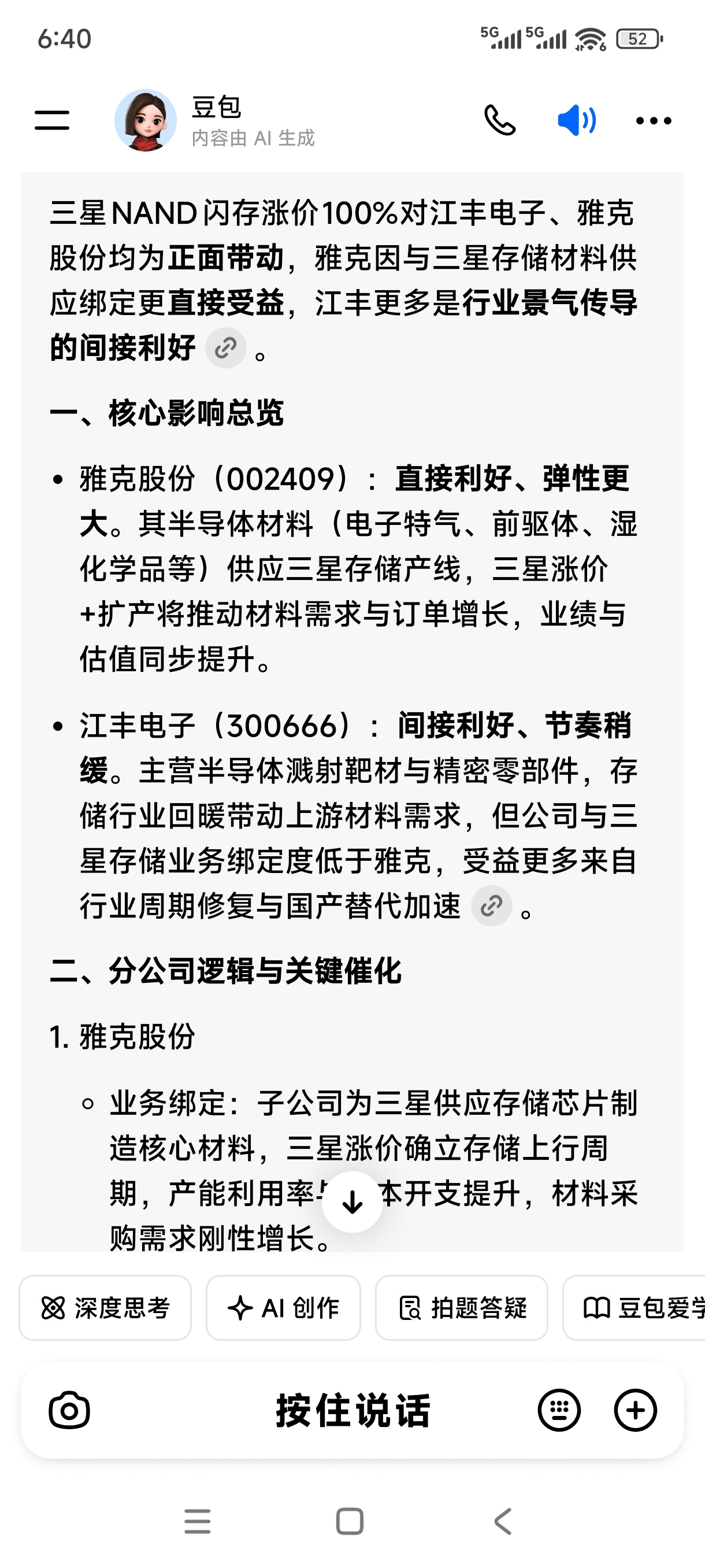三星涨价雅克科技直接受益,今天股价会大涨!下面豆包解析