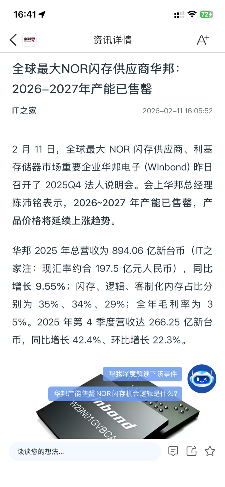 雅克作为存储芯片材料重要供应商,已经满产了,生产设备快干冒烟了,业绩只会滞后,不