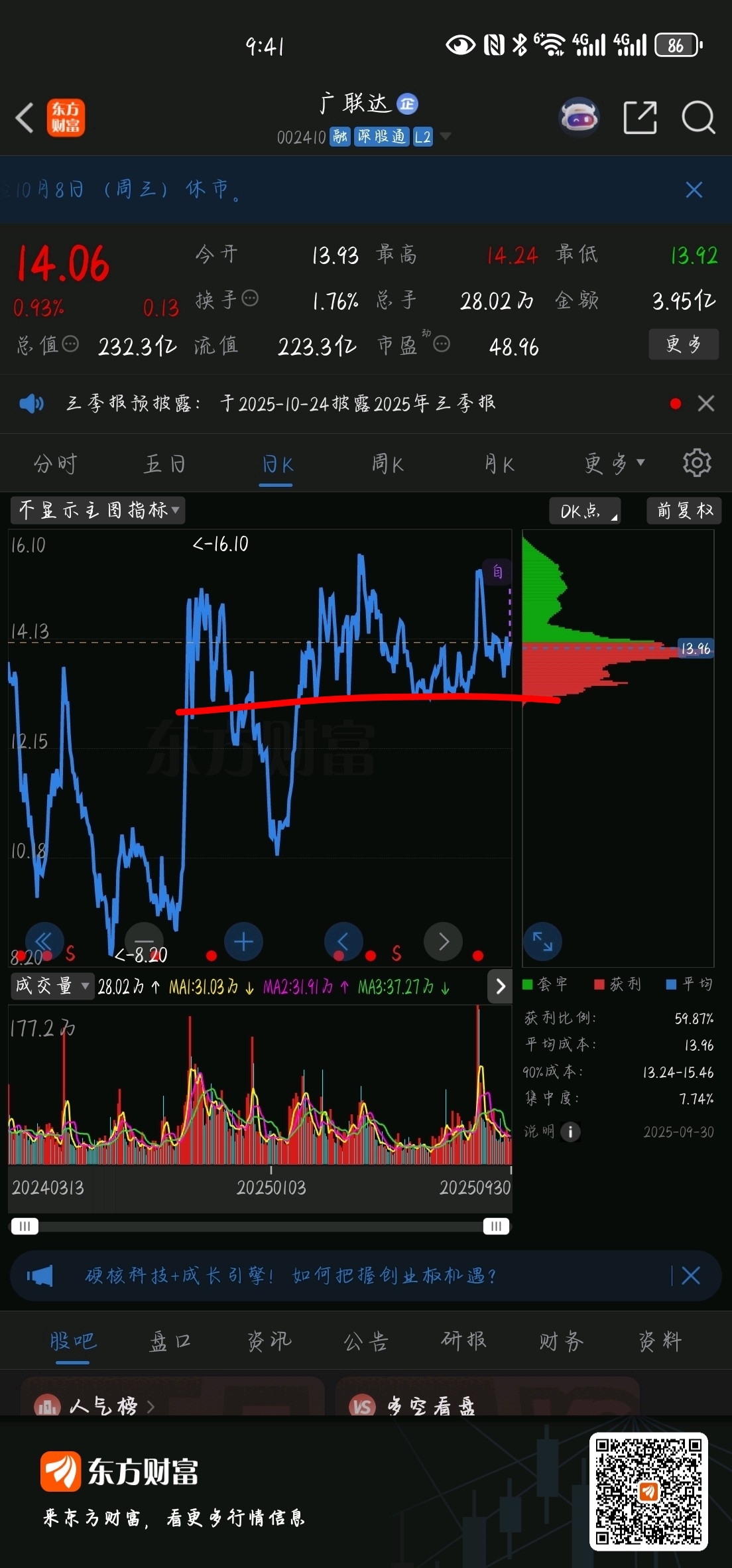 $广联达(SZ002410)$ 底部筹码都镂空了悠着点