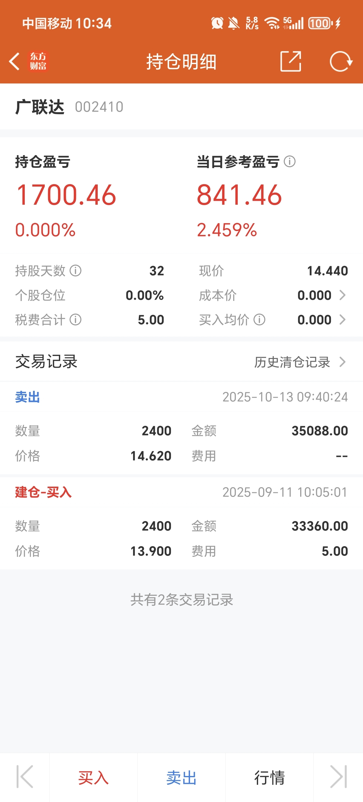 $广联达(SZ002410)$ 其实这个股票是上升趋势,我是因为急需钱还信用卡,需要还3万多,因此卖出去了,拿了一个月收益5%。知足。但是如果不急用钱的,这个股未来一周绝对冲破15元的