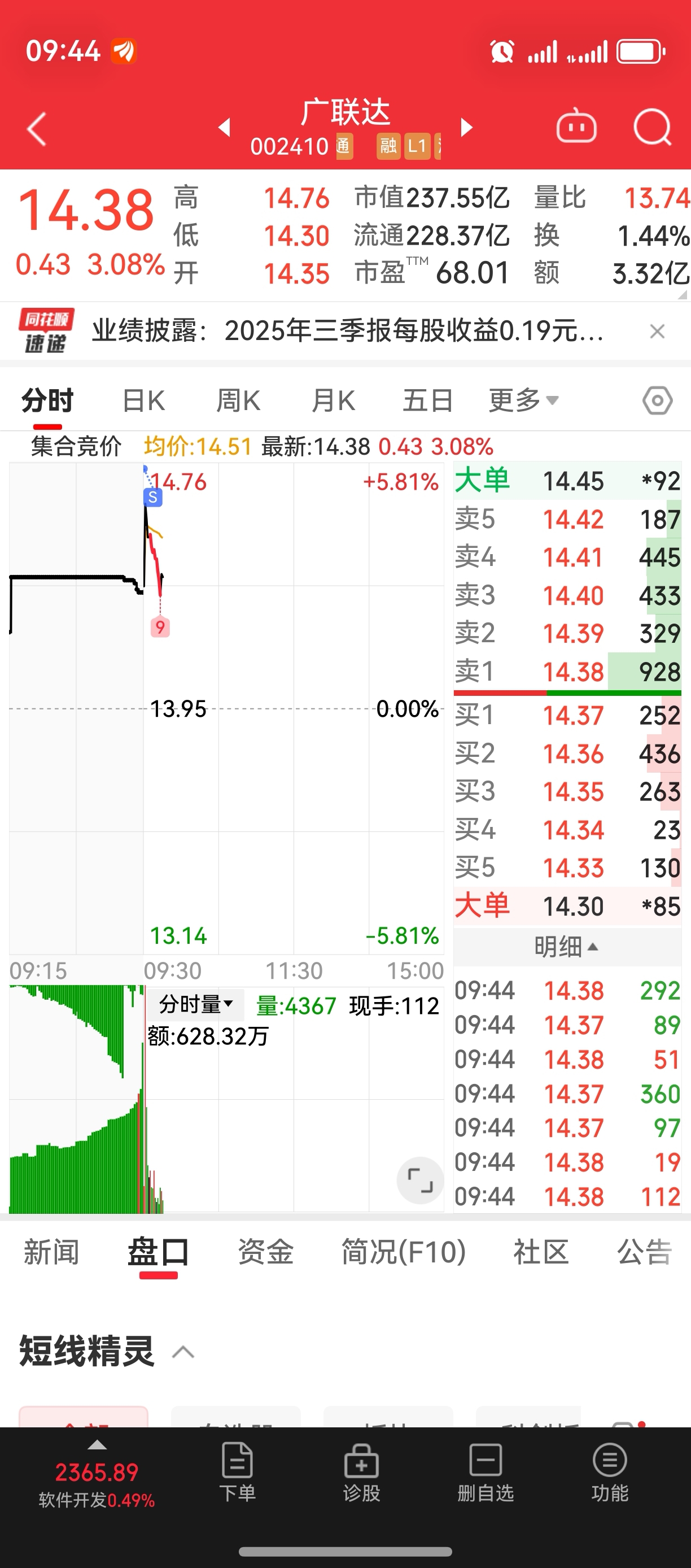 $广联达(SZ002410)$ 赚了就跑,不贪心,