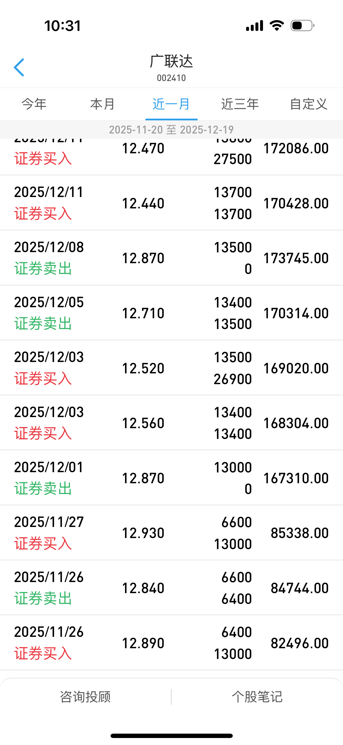 最近买入最高价格12.93,卖出最高价格12.87,目前小赚一万元
