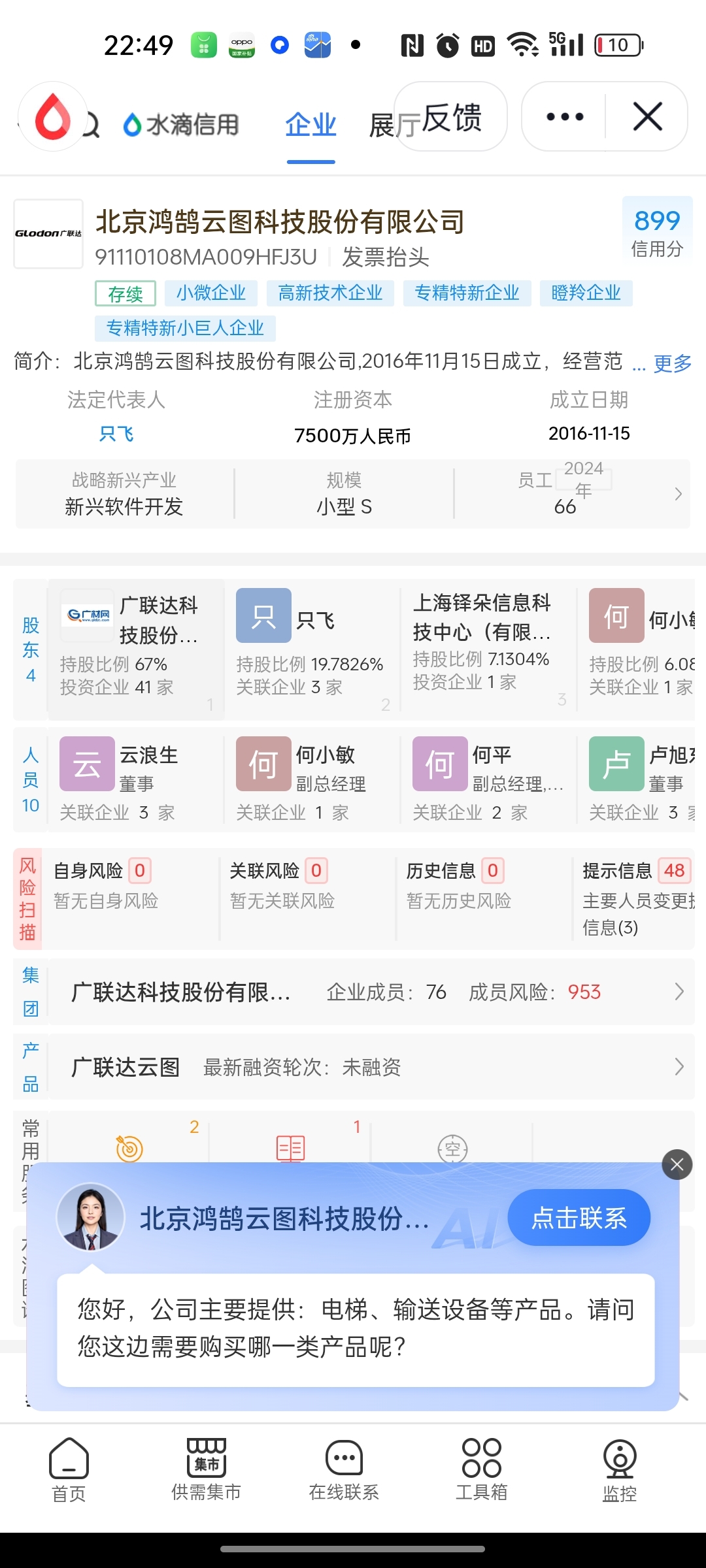 股权结构:广联达直接持有鸿鹄云图 67% 的股权,拥有绝对控制权 。