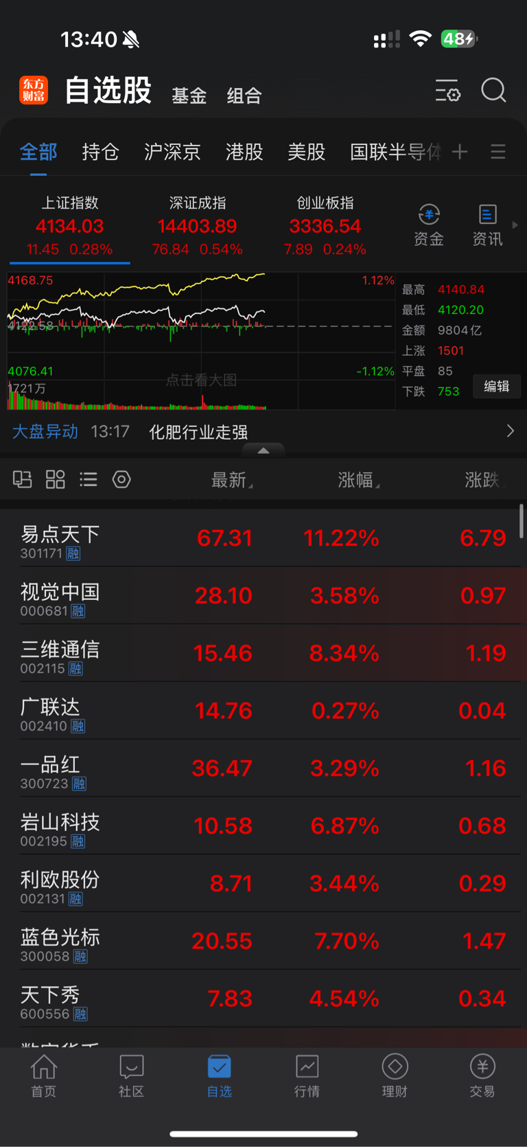 你看我列表有一个低于三个点了吗,你跟st了一样,玩什么呢,大盘涨了板块涨了你不涨