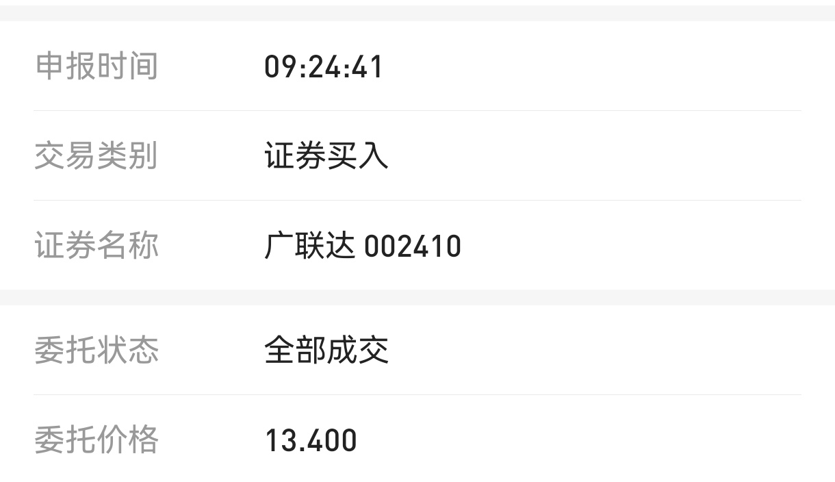 $广联达(SZ002410)$ 13.40也是开盘就挂单了,市场是大量化,狼哥是小量化,明天如果有高点我依然会抛今天的一半,我还是那句9.5-19的区间领域已经展开,多空不是我能决定的,我唯一能做的就是先天不败,哈哈。