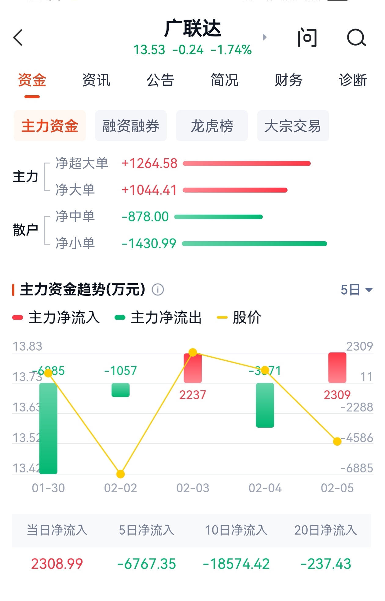 $广联达(SZ002410)$ 今日主力资金是净流入的,看看下午是否可以拉升点。保持不跌。