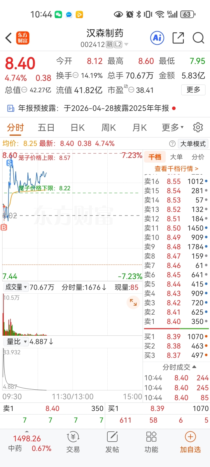 $汉森制药(SZ002412)$ 会不会涨停哦哦哦哦8.30做T了