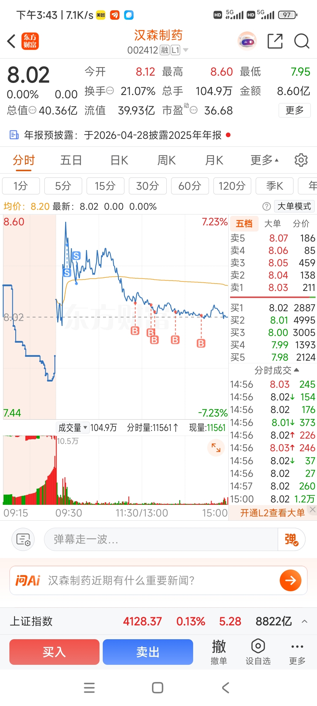 $汉森制药(SZ002412)$ 我嘴硬,行情没结束。