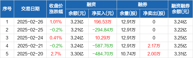 雷科防务:融资净买入196.53万元,融资余额3.23亿元(02-26)