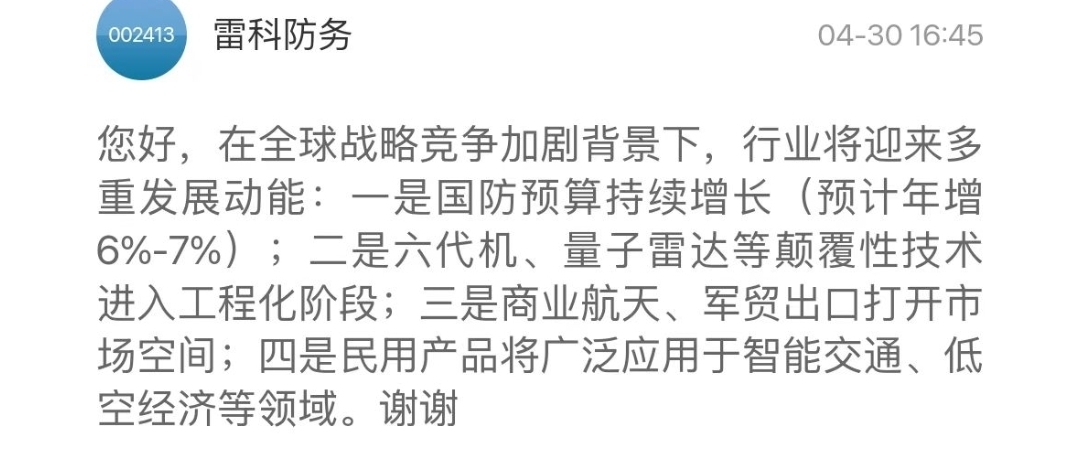 $雷科防务(SZ002413)$ 这货中标的大订单什么时候公布???量子雷达布局进度如何????
