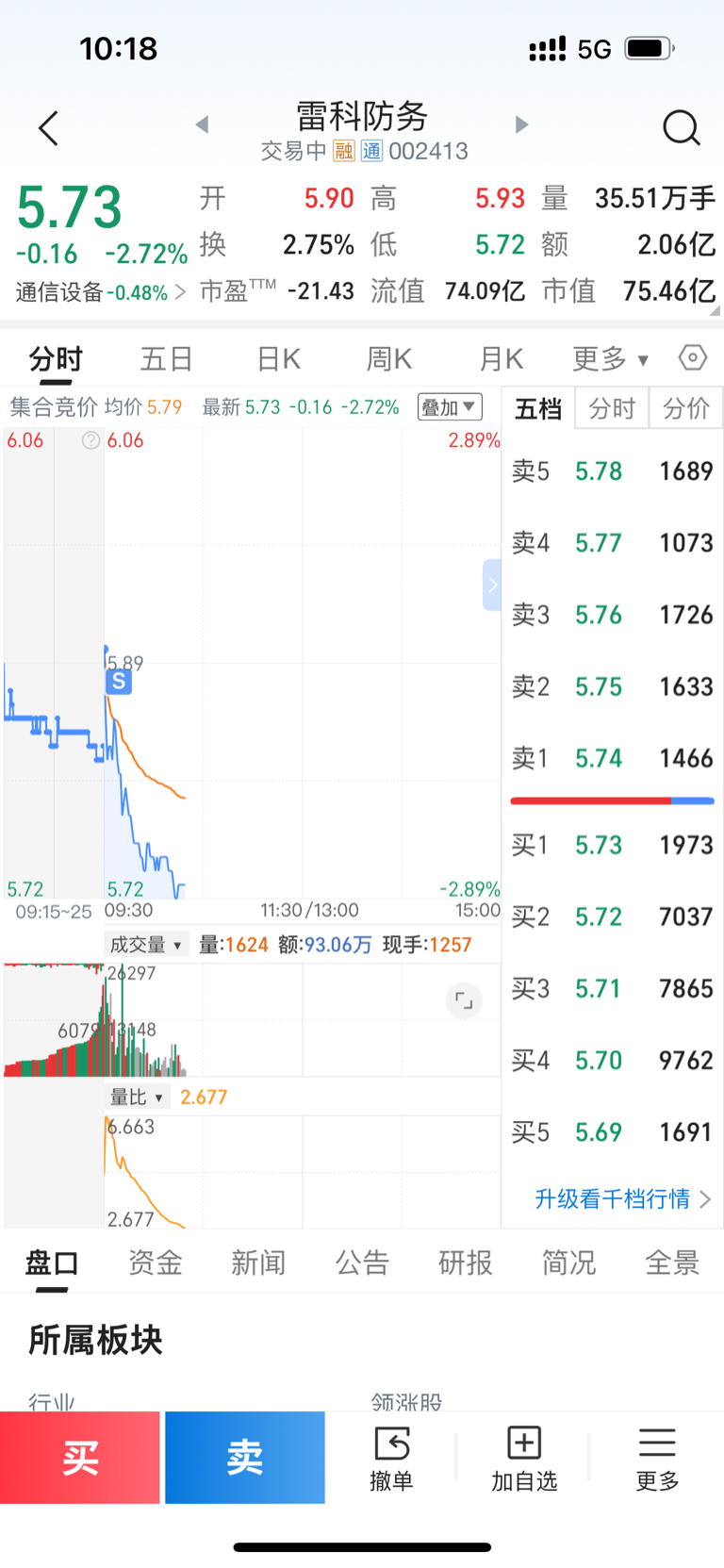 $雷科防务(SZ002413)$ 真它喵滴吓人,昨天进的微亏