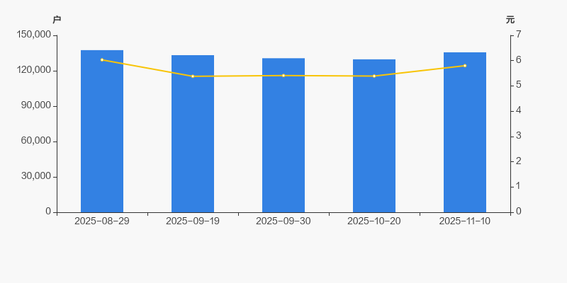 2025年8月29日至今,公司股东户数有所下降,区间跌幅为1.35%。2025年8月29日至2025年11月10日区间股价下降3.81%。