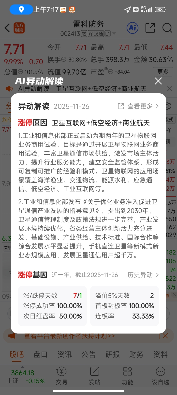 $雷科防务(SZ002413)$ 涨停基因逻辑