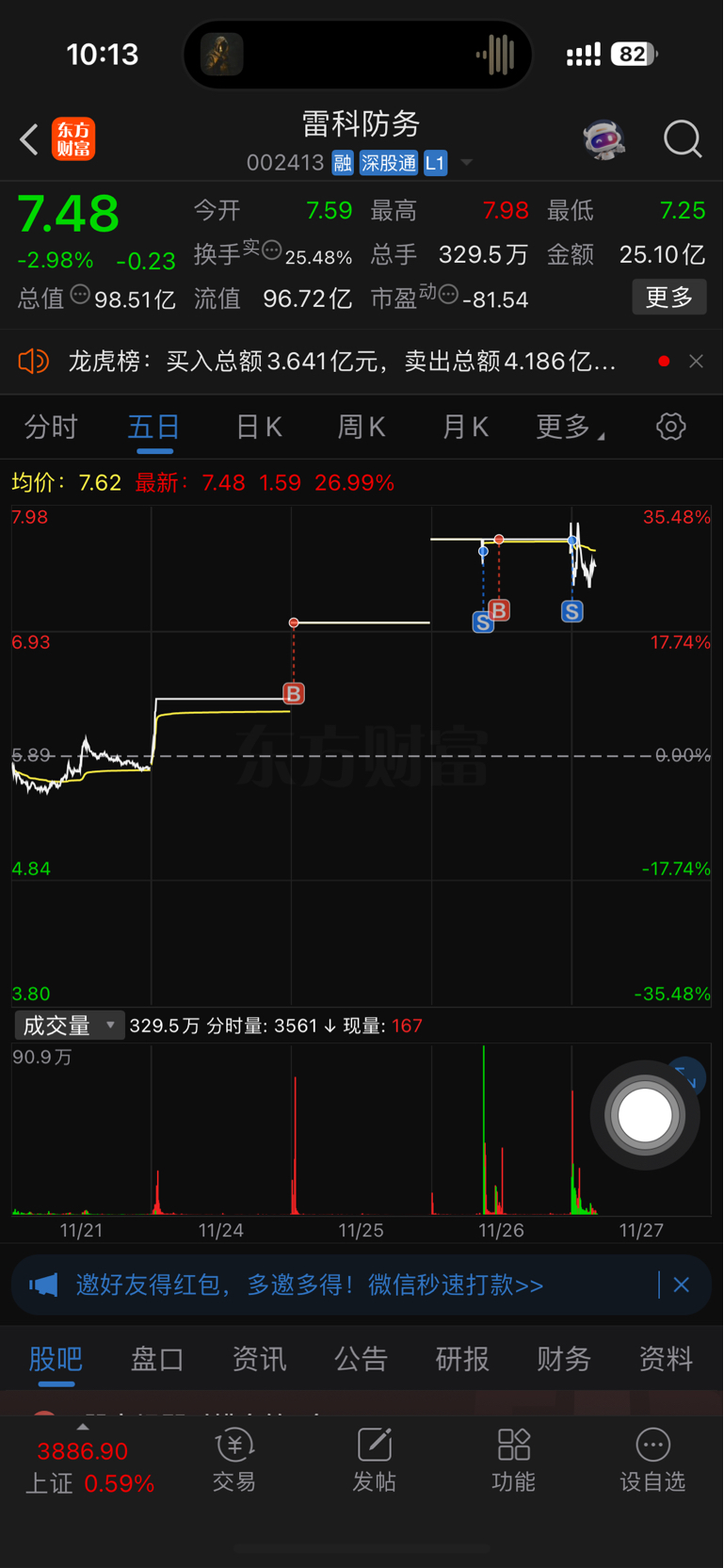 $雷科防务(SZ002413)$ 走了,浪费个手续费