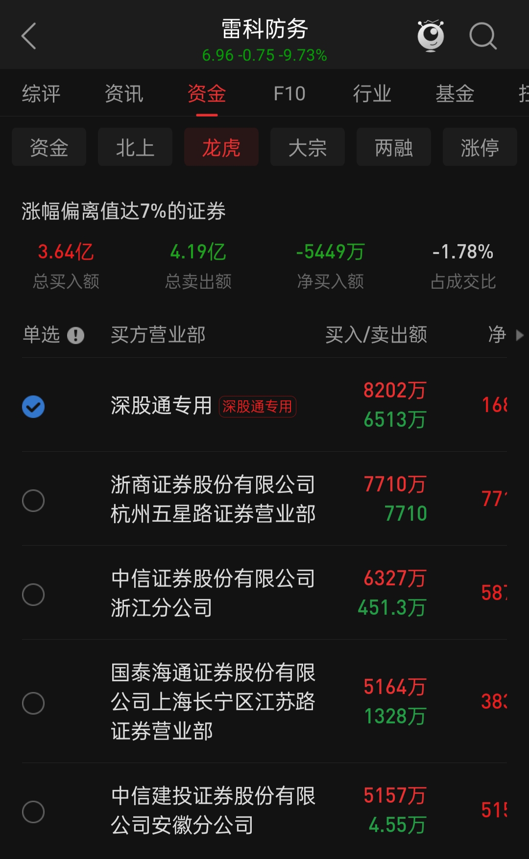 $雷科防务(SZ002413)$ 今天太失心了,不是六一中路买了6000万,就这破竞价我跟本不会买,我朋友说没有慧根,就要会跟人,跟六一中路连吃两个跌停