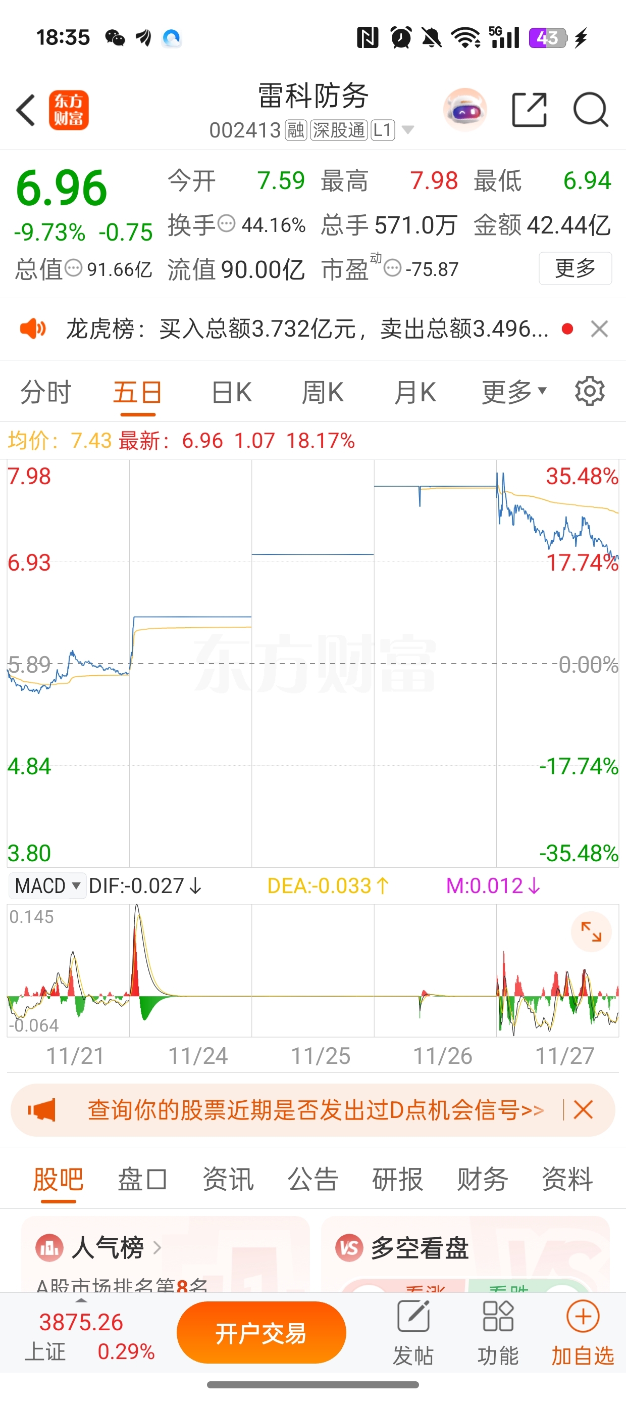 $雷科防务(SZ002413)$ 天天炒垃圾,还是一样的市场,撤退