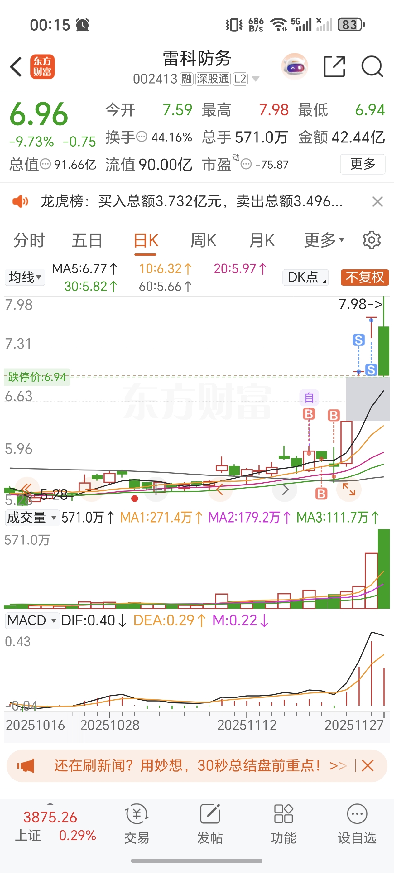 $雷科防务(SZ002413)$
