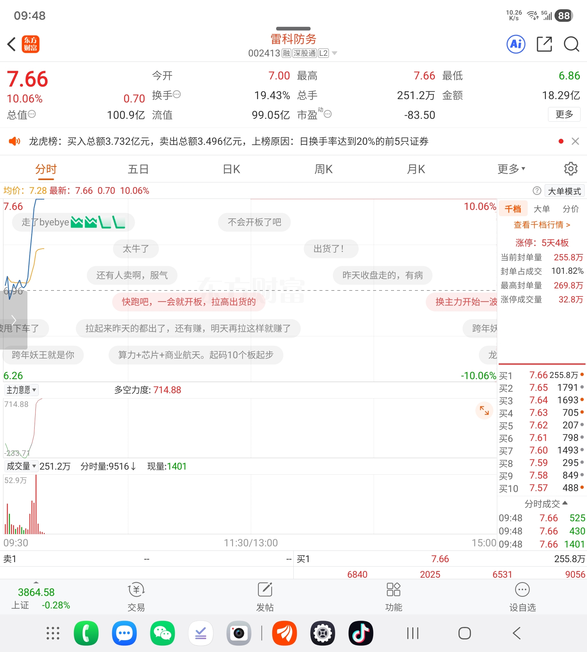 $雷科防务(SZ002413)$ #炒股日记# 稳了啊,后面应该还有两到三个板。