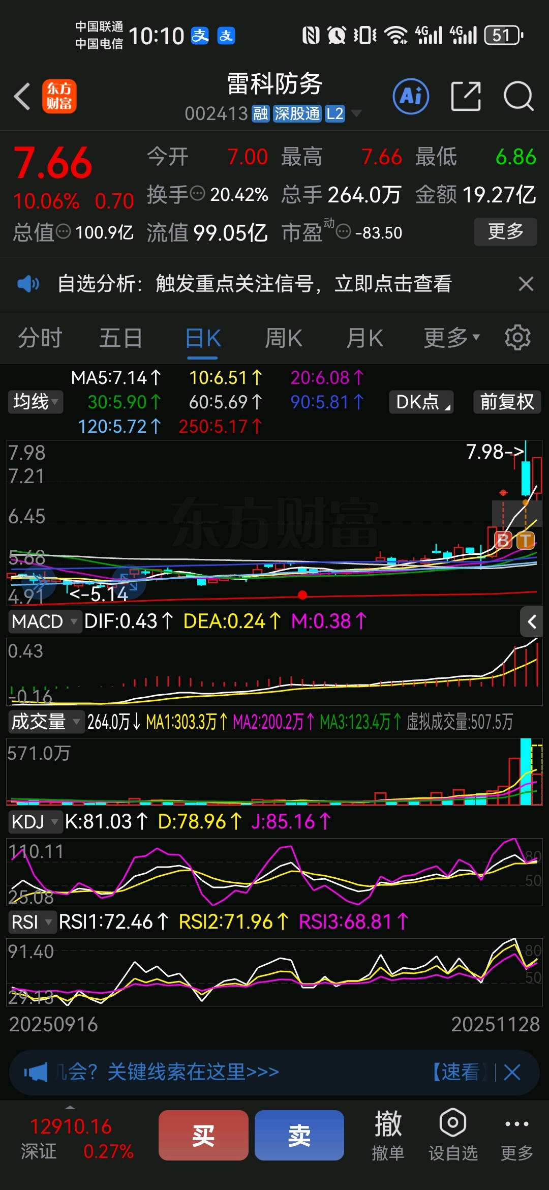 $雷科防务(SZ002413)$