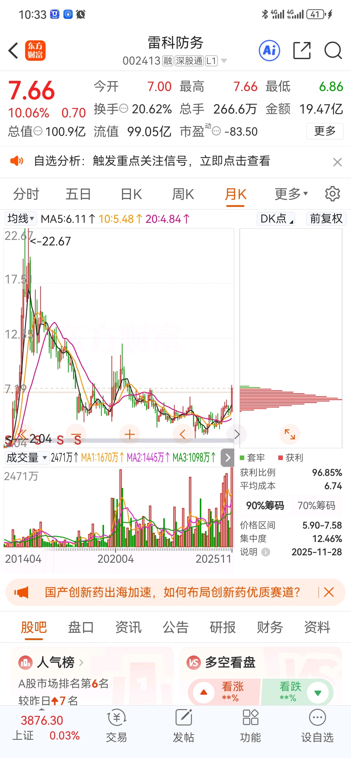 $雷科防务(SZ002413)$ 月线这么一看,目前根本不算高位,甚至算底部了