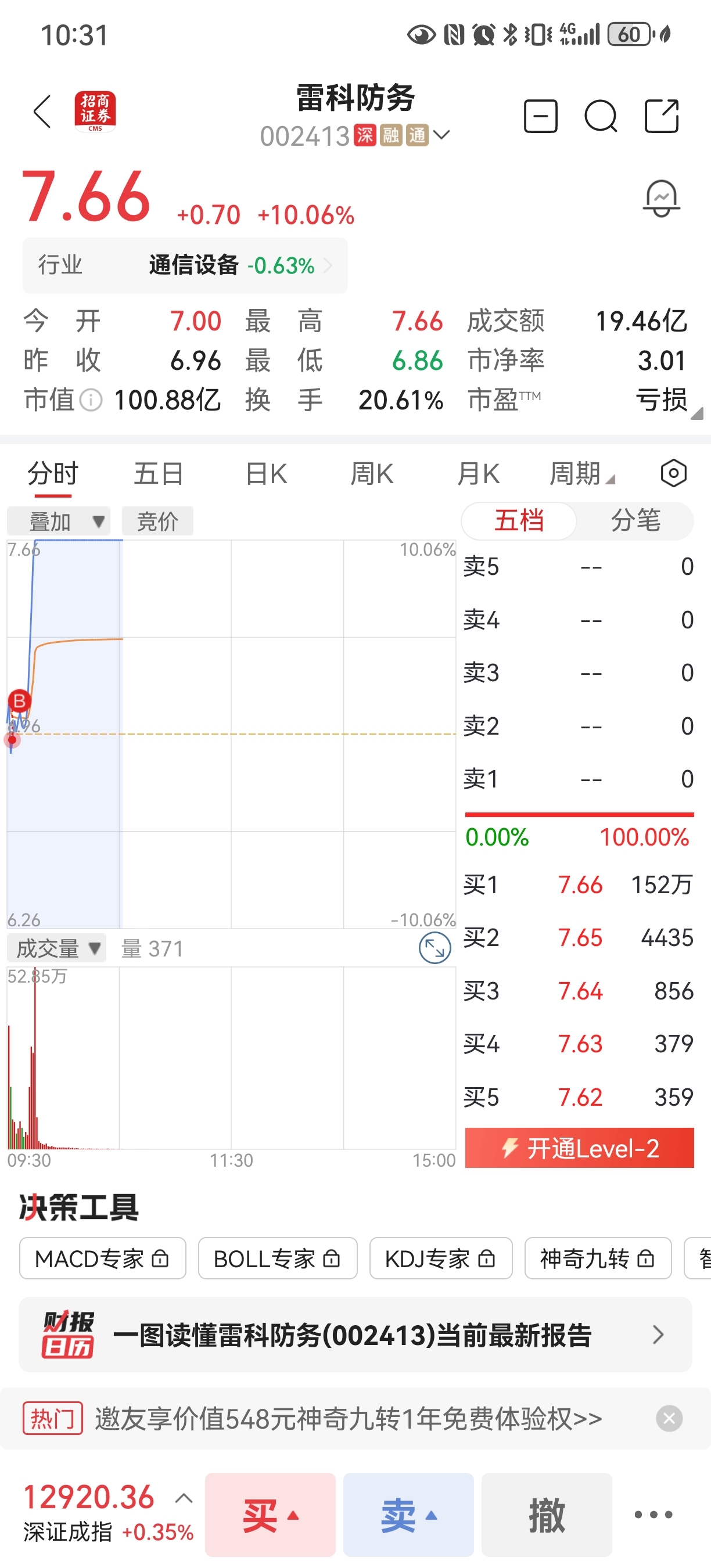 $雷科防务(SZ002413)$ 有跟我一样开盘买的没