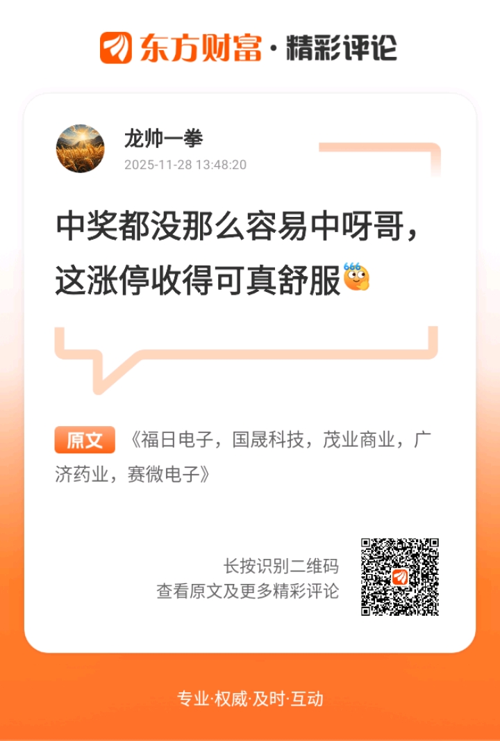 福日电子 ,网传字节跳动在研发AI手机未经证实哈,这消息一出来,消费电子板块又多了个炒作逻辑,跟钓鱼时发现新的鱼群通道似的。这公司最吸引我的是代工大佬身份,网传给哗为 Mate80 做代工未证实,还是大疆扫地机器人的代工厂,哗为更是重要客户,这稳定的客户资源跟钓鱼时知道这片水域有大鱼一样让人放心。而且子公司中诺通讯还做酒店机器人,已经少量出货了,工业机器人在试产,旗下还有对讲机业务,实控人是福建G资委,G企背景加持,靠谱度拉满。更绝的是子公司发布了基于瑞芯微平台的智能座舱解决方案,是目前市面上功能最齐全的,这技术实力跟钓鱼时用了专业钓竿似的,竞争力十足,值得纳入观察清单。