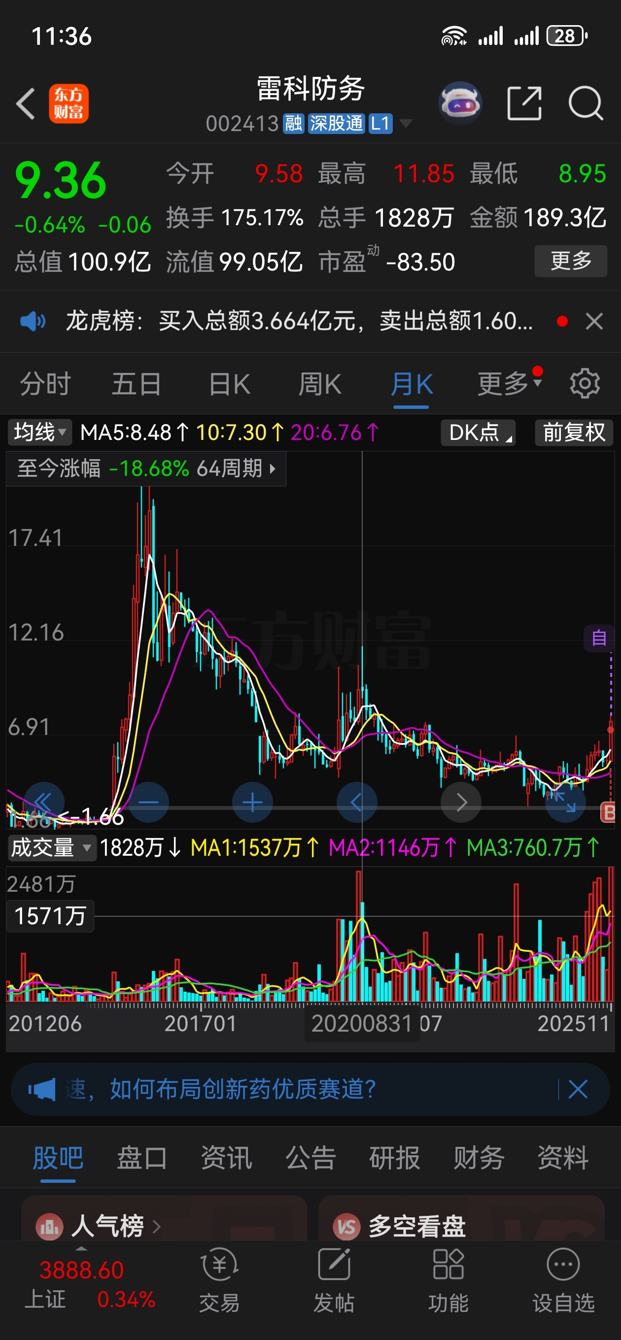 $雷科防务(SZ002413)$ 11月涨幅只是开胃菜,12月翻倍大阳线必破11.85!雷神,必然雷打不动!航天+太空数据+存储当下三大热点题材集一身必然造就大妖!市值符合!营收有预期!周五尾盘封单最多!看好周一竞价千万封单顶死!少则3板,多则7-10板!#周末杂谈# #炒股日记# #复盘记录#