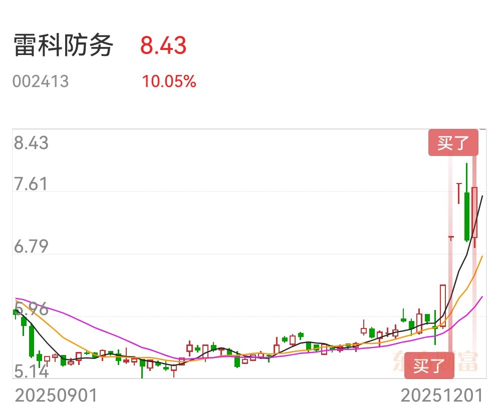 @妙想@炒股学军哥@财气盈盈秋水方军,雷科防务。昨日涨停,昨日连板看好军工。雷科