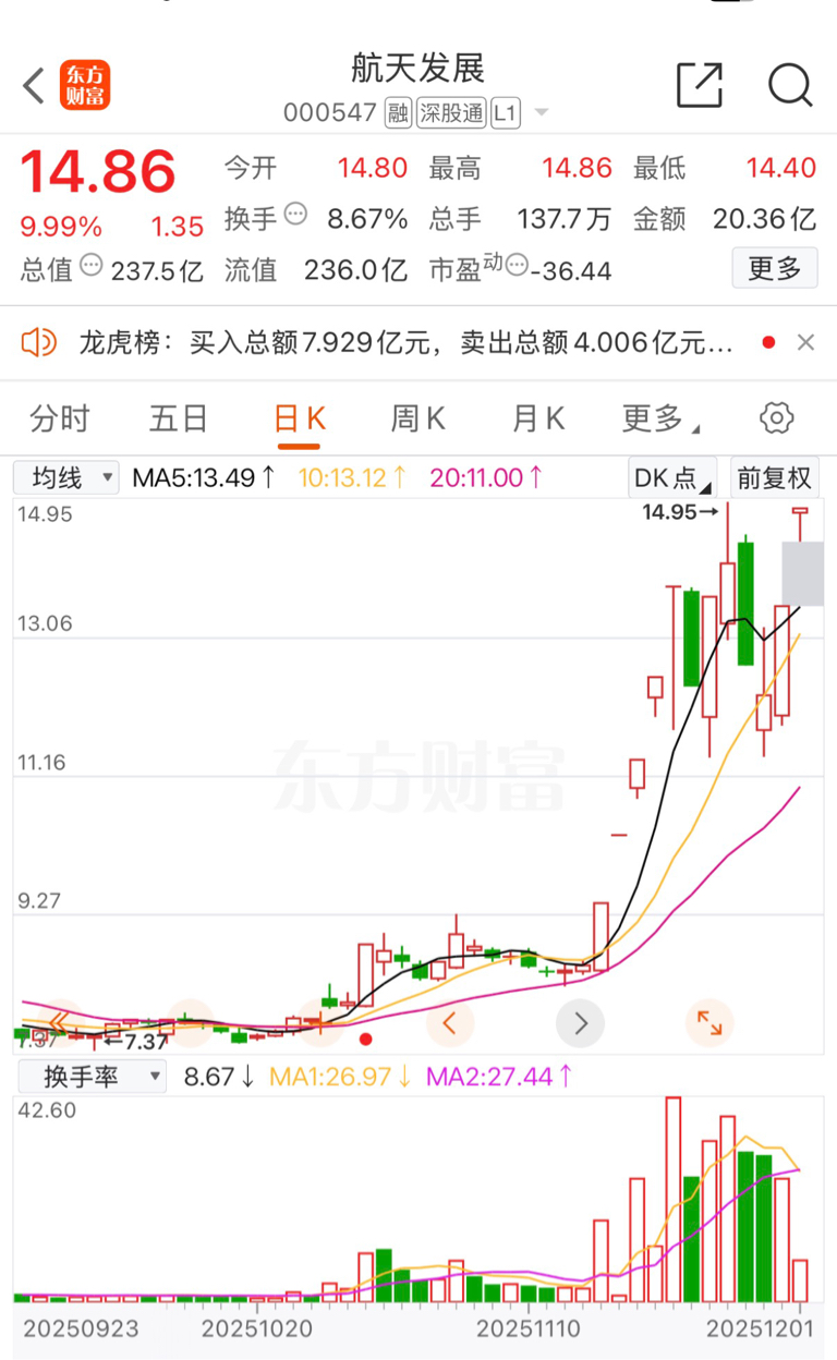 $航天发展(SZ000547)$ “暴力扫货”式涨停