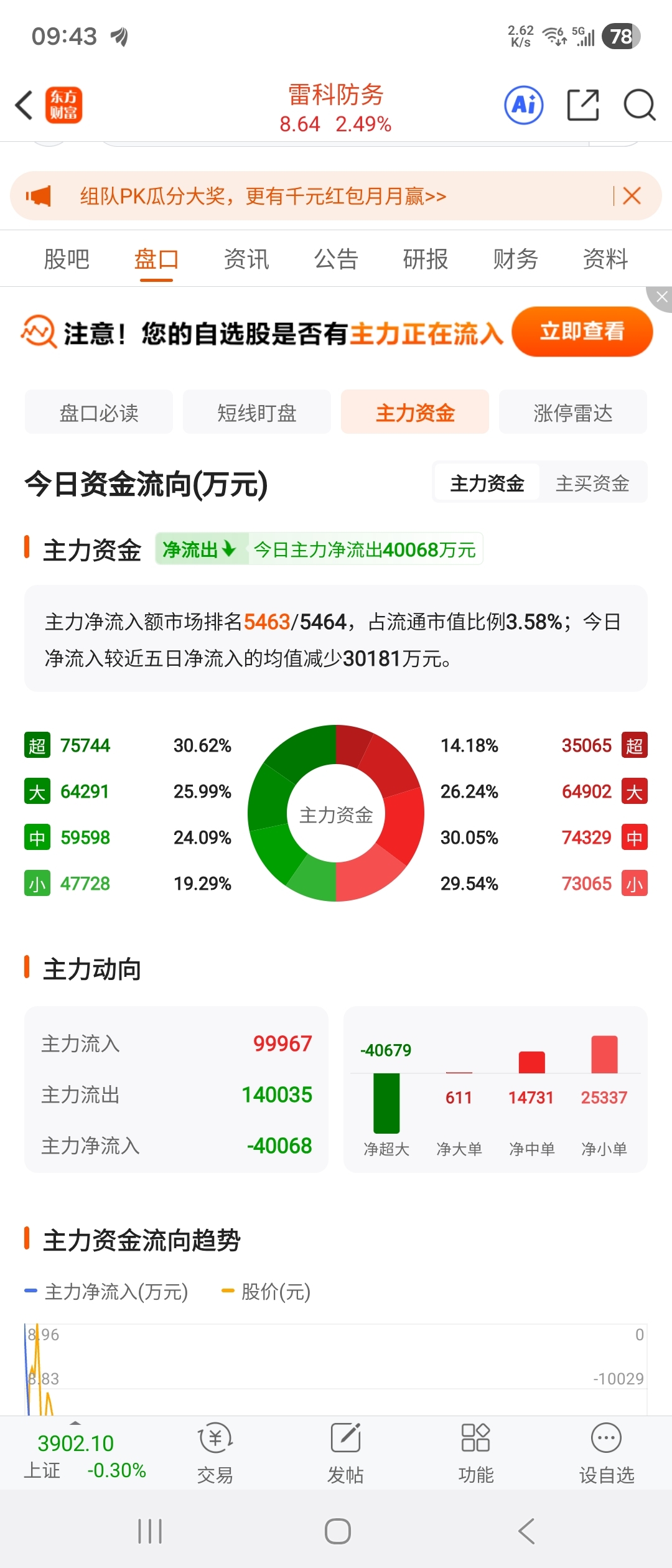 $雷科防务(SZ002413)$ 今天应该是不行了,主力一直出货