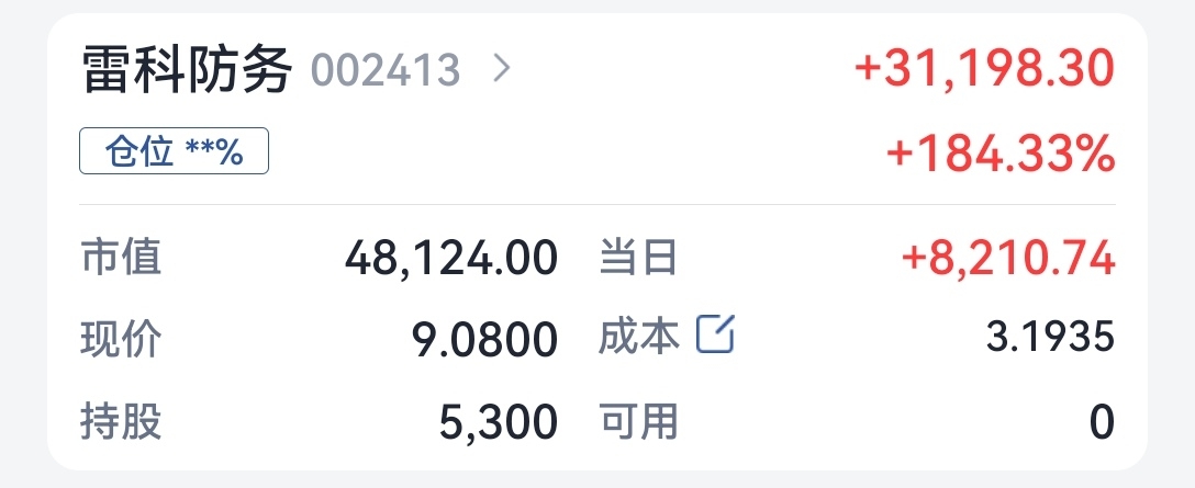 $雷科防务(SZ002413)$ 卖了,放进口袋稳当