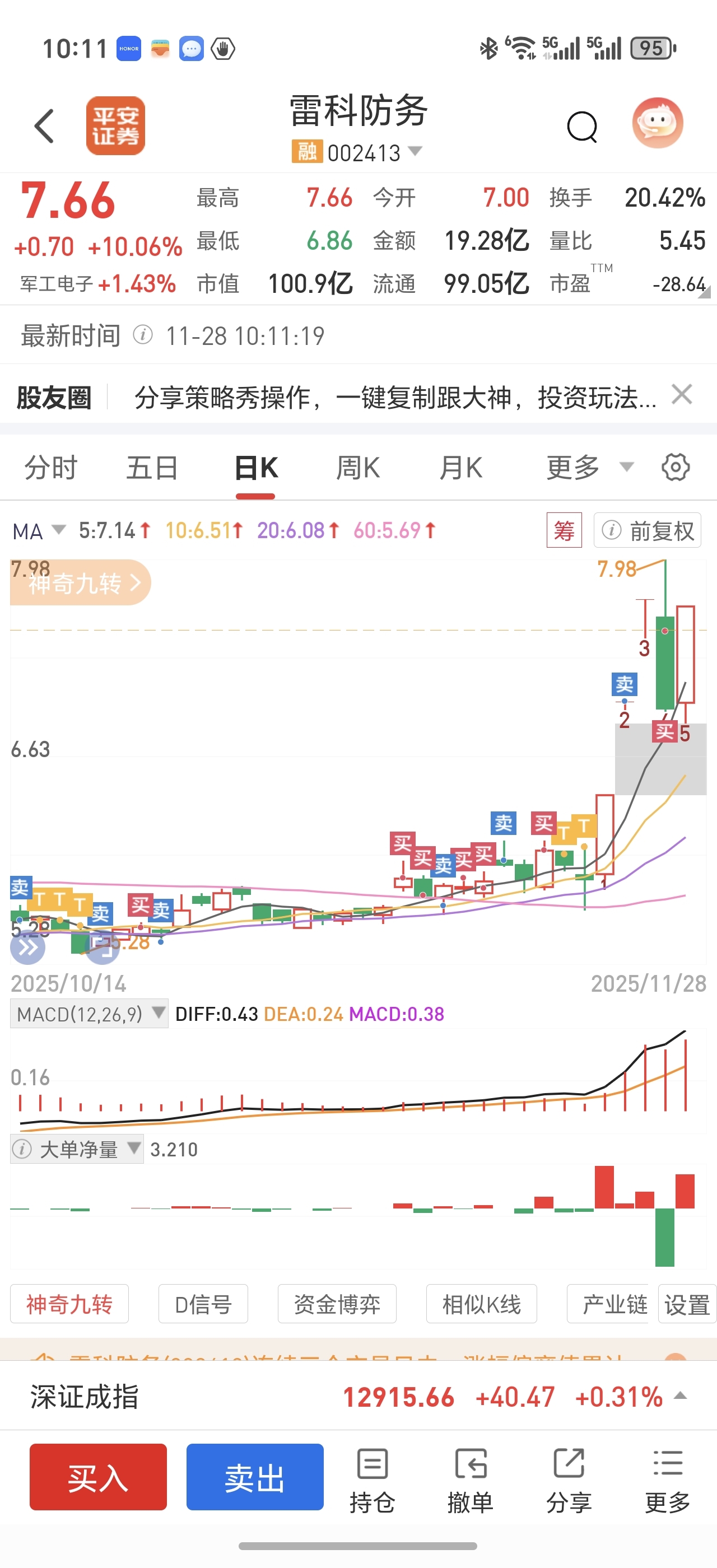 $雷科防务(SZ002413)$ 最好的操作是不要操作,一下让我少赚10个点