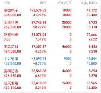 乾照咣电,这逻辑其实不错,砷化镓太阳能电池产品已批量应用于大型商业航天星座组网卫星,际市场也有订单,AI 带来的数据中心扩容,芯片需求会大增,它布局了 10G、25G 产品,还在研发 50G 及以上产品。第一大股东海信视像持股 26.21%,市场还有信芯微注入的猜想,作为福建省内上市企业,砷化镓外延片出货量稳居G内第一。不过今天航天发展和雷科防务表现更强势,跟钓鱼时同一个水域有更好的口似的,果断换钓点,所以放弃了乾照咣电,盘中它冲高时就出手了,见好就收,炒股跟钓鱼一样,要懂得取舍。