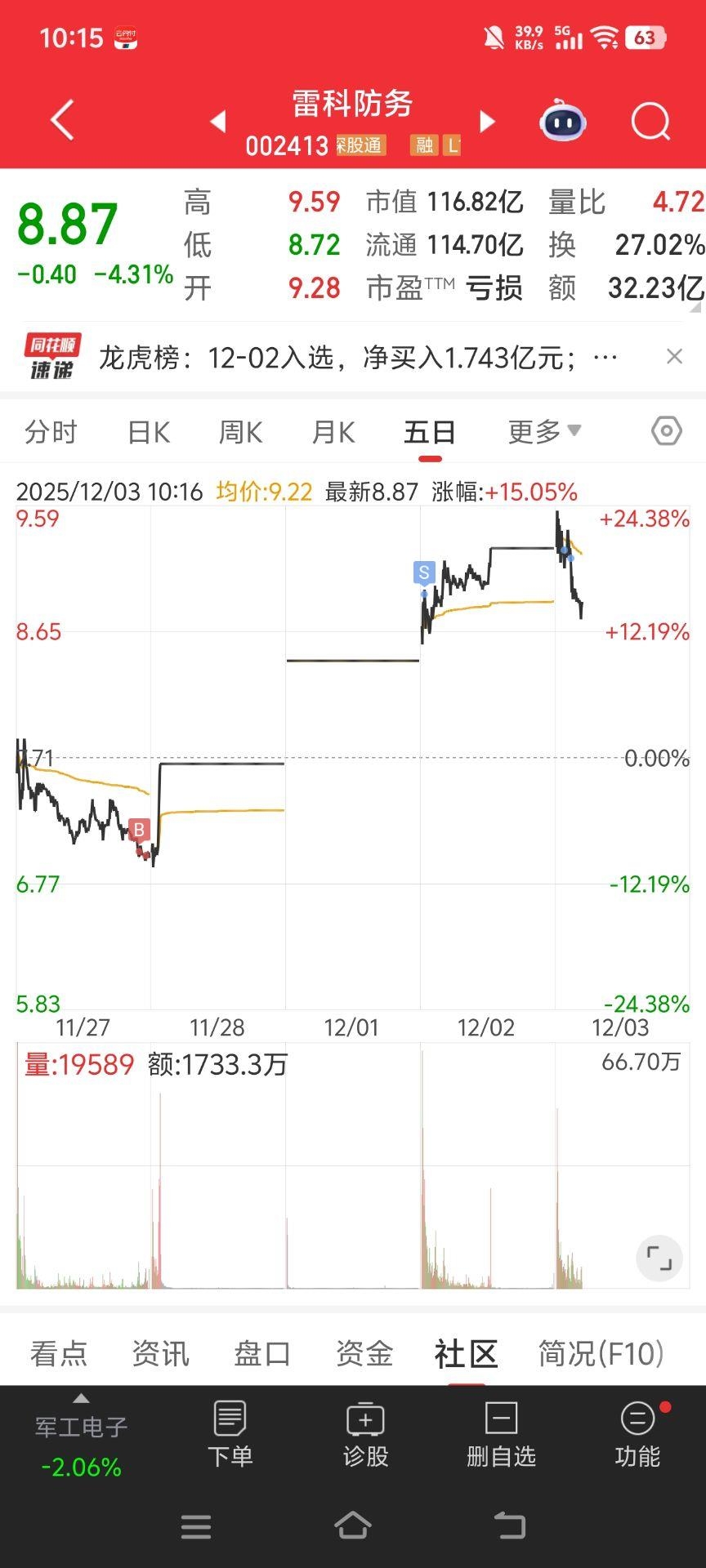 $雷科防务(SZ002413)$ 连续两天卖的都不好,但是也心平气和地接受,谁能做到完美呢?追求完美有可能会适得其反,知足常有!(个人观点,仅供参考)