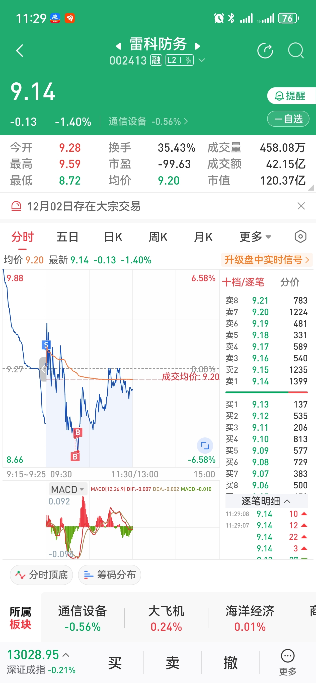 $雷科防务(SZ002413)$ 昨天买的雷科,今天卡位分歧开盘卖了,水下接回来,期待明天反包